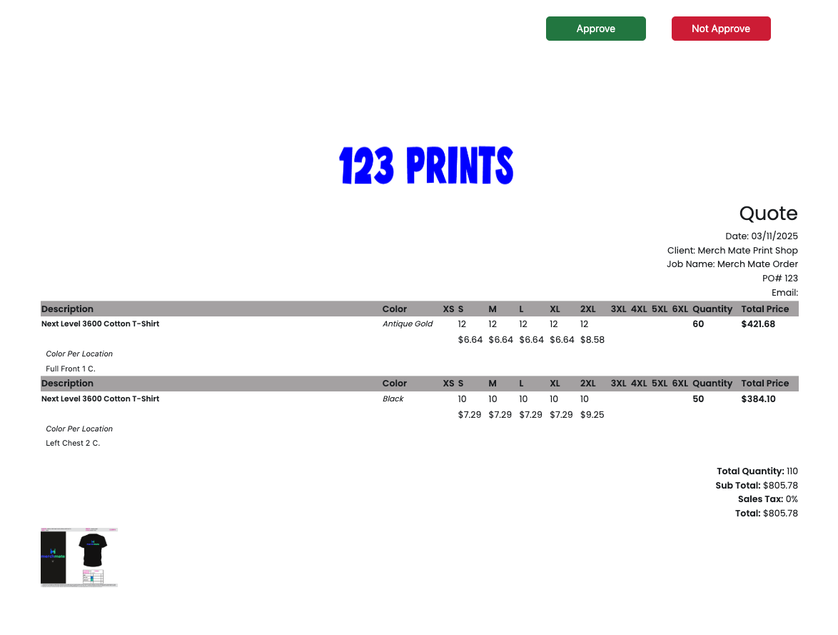Easily create a quote in seconds, send mock ups for approval, and quickly view the status of in-house orders!