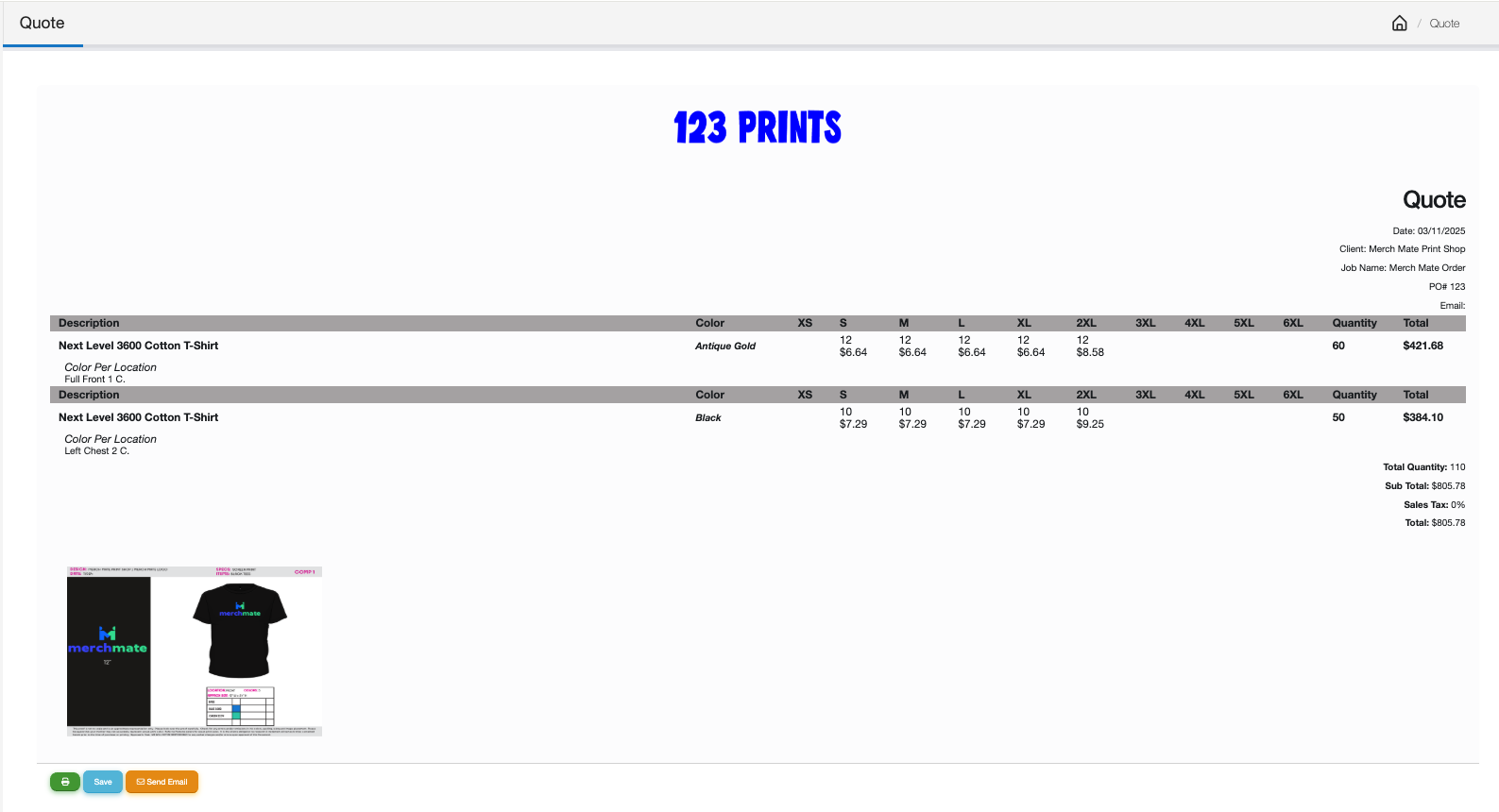 Create a purchase order from scratch or convert an approved quote to a purchase order and email it to your vendor directly from Merch Mate!